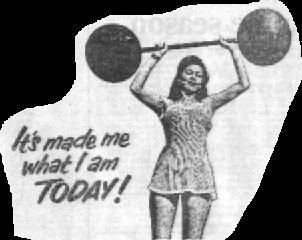 This is a picture of a supposedly normal woman holding up a HUGE barbell while playing a kazoo.